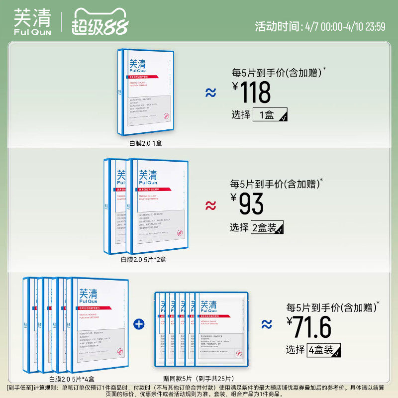 【专享】芙清白膜械号医用敷料痘痘医美术后修复改善痤疮非面膜
